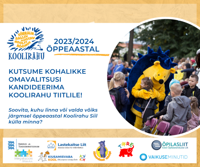 Lastekaitse Liit kutsub kohalikke omavalitsusi kandideerima Koolirahu linna või valla tiitlile 2023/2024 õppeaastaks